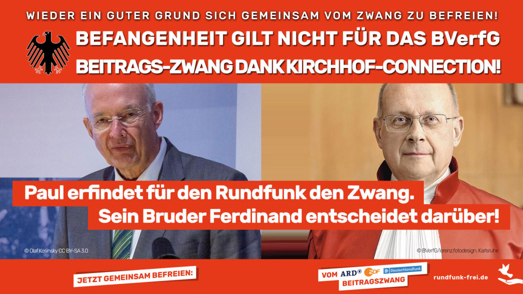 Wenn ein politisch nominierter Bundesverfassungsrichter über das vom öffentlich-rechtlichen Rundfunk und von der Politik gekaufte Gutachten seines Bruders zu entscheiden hat, dann liegt es an dir, ob du dies noch stillschweigend hinnehmen kannst.